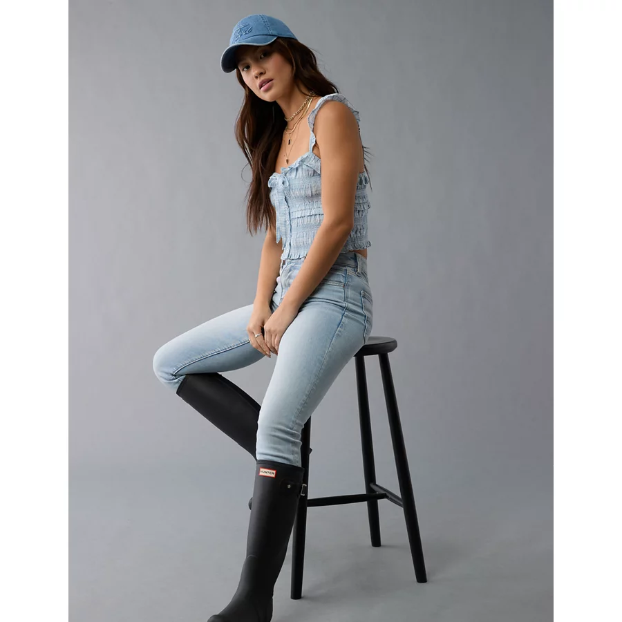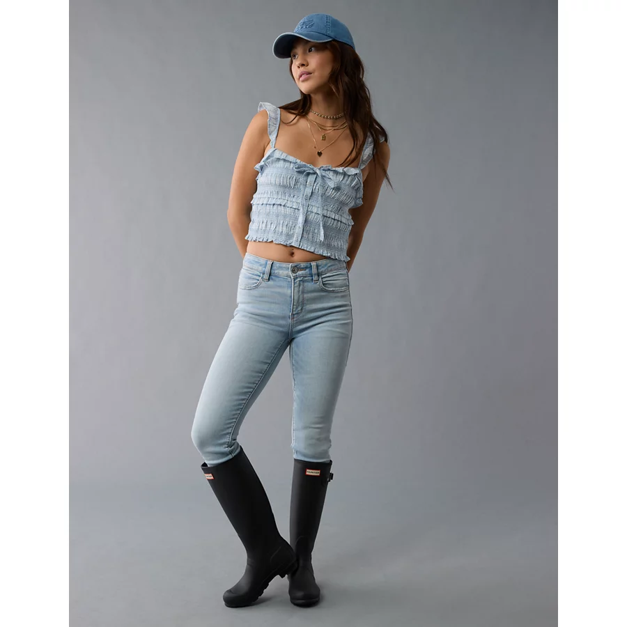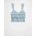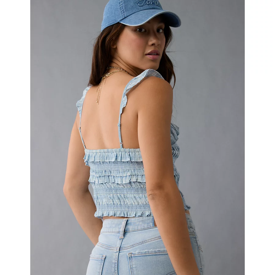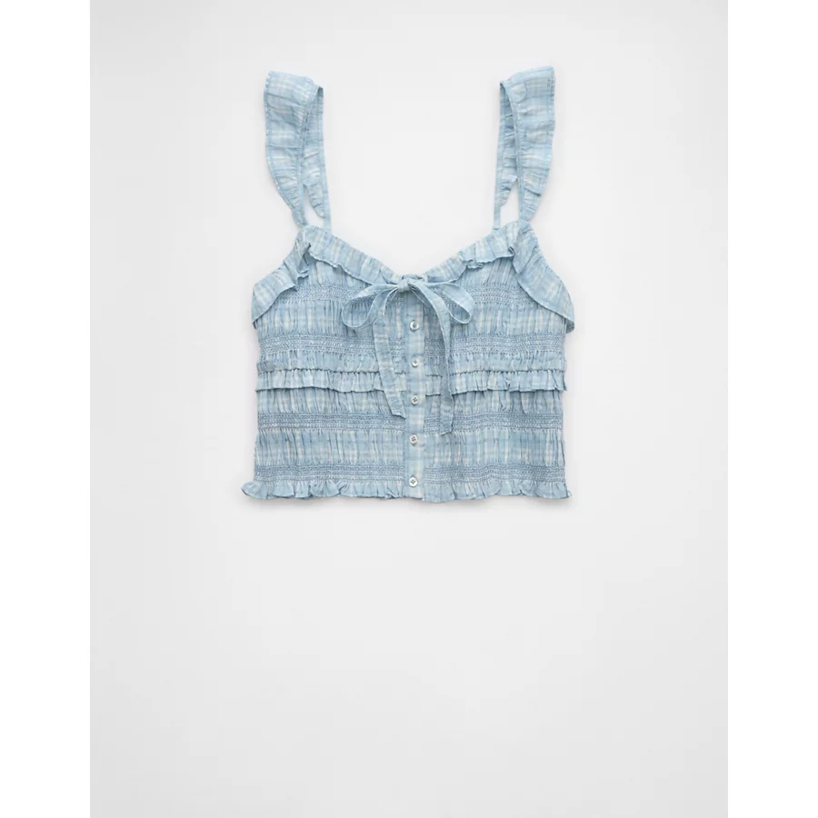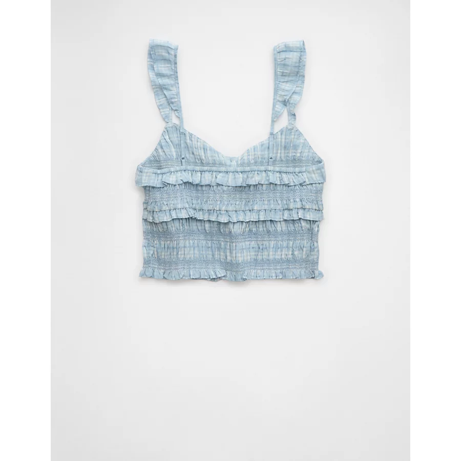 AE Smocked Ruffle Tank Top – Light Blue