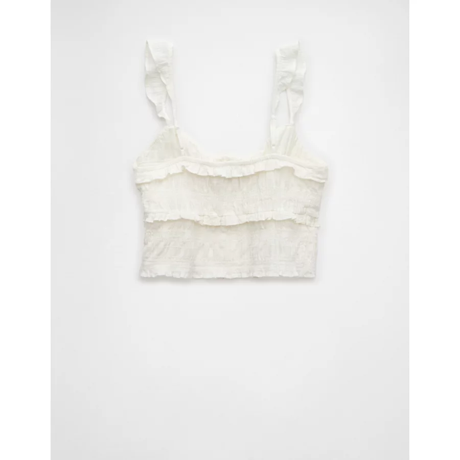 AE Smocked Ruffle Tank Top – White
