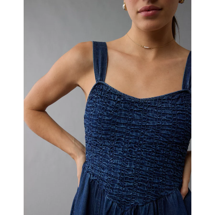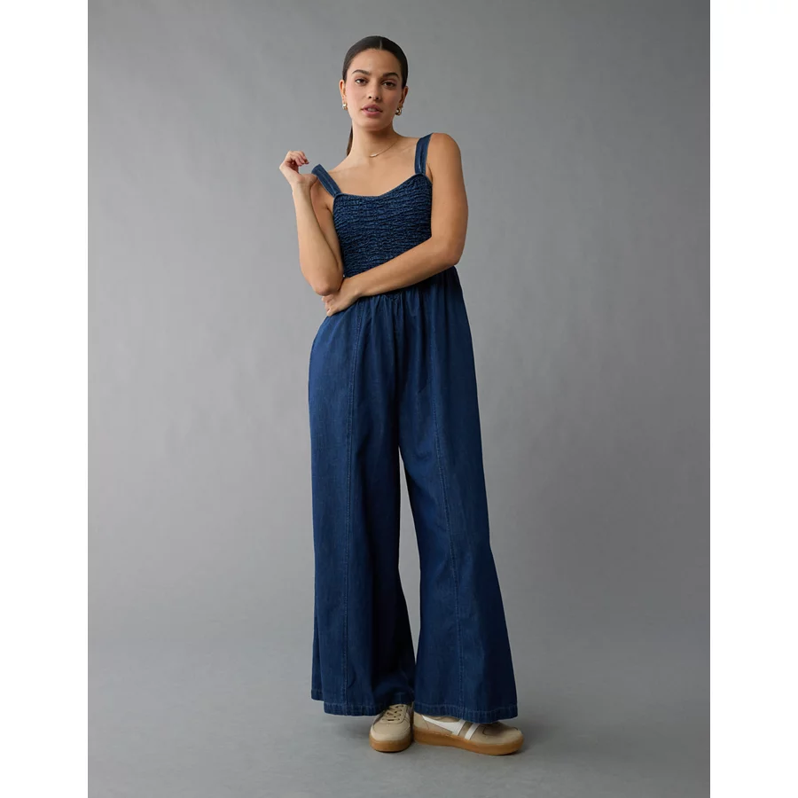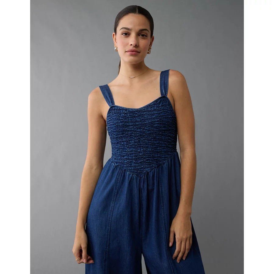 AE Smocked Sweetheart Jumpsuit – Navy