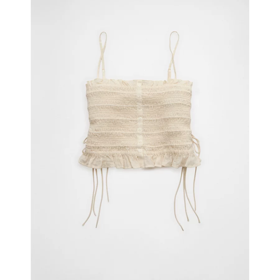 AE Smocked Tie Side Button-Up Tank Top – Cream
