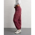 AE Snappy Stretch High-Waisted Baggy Cargo Jogger – Wine