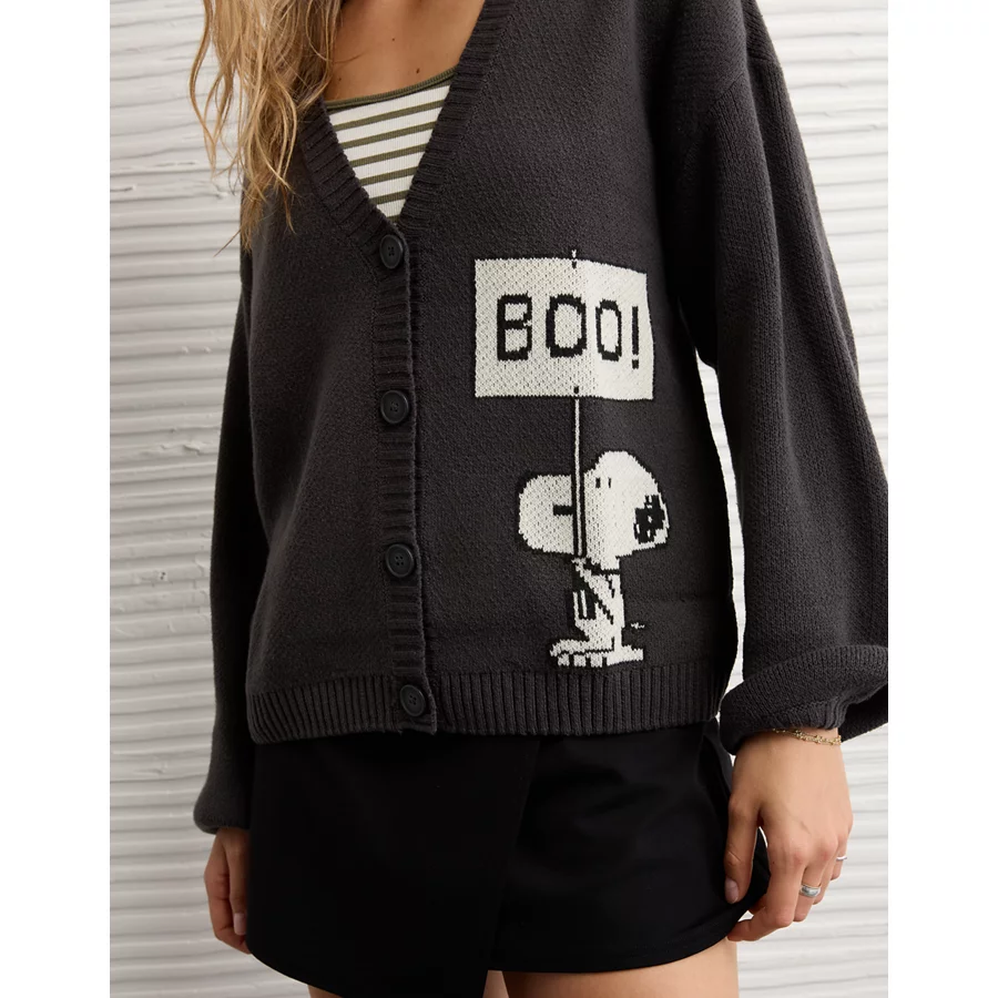 ABO Snoopy Fall Leaves Plush PJ Shirt – Brown