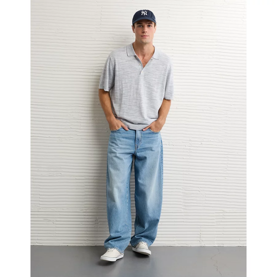 AE Space Dye Sweater Polo Shirt – Light Blue