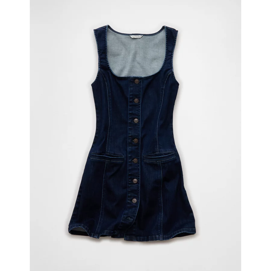 AE Square Neck Denim Mini Dress – Dark Wash