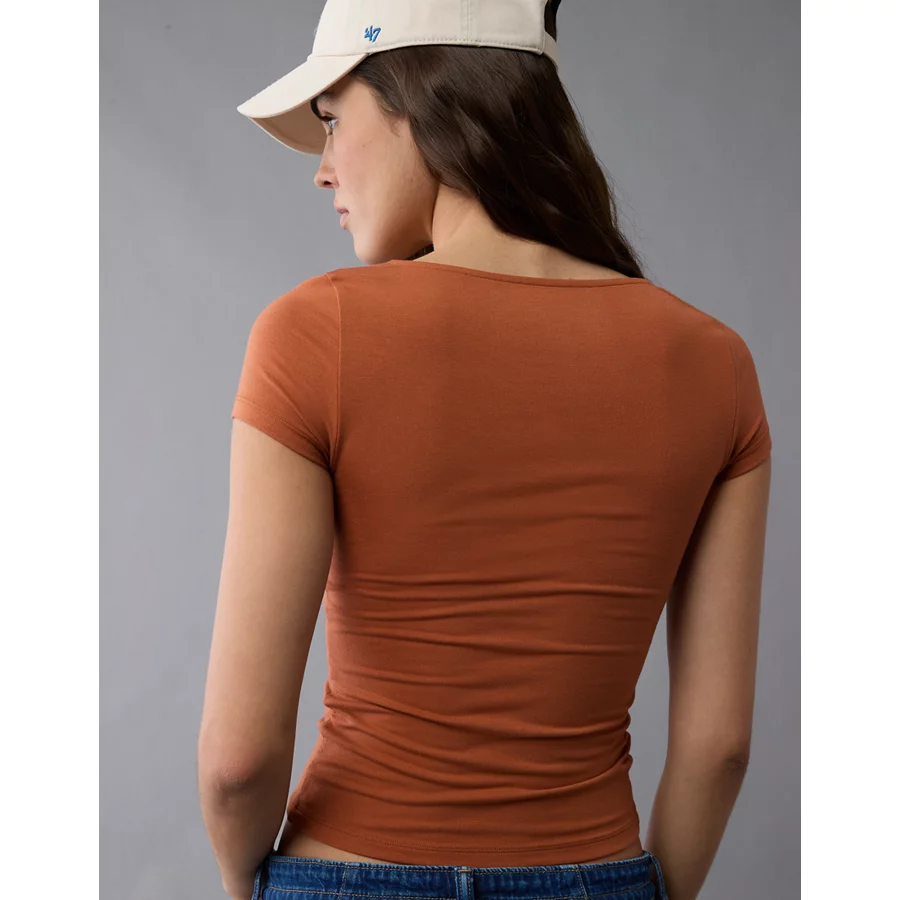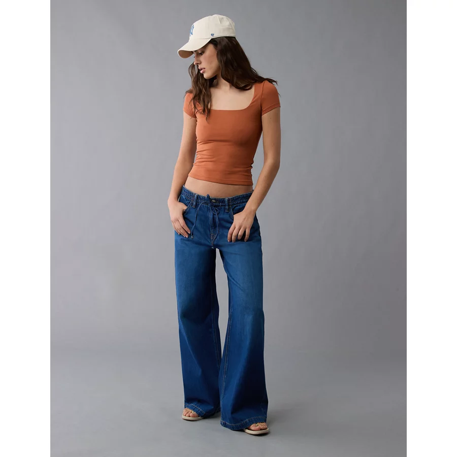 AE 11″ Dreamy Drape Stretch High-Waisted Jort – Light Tinted Wash