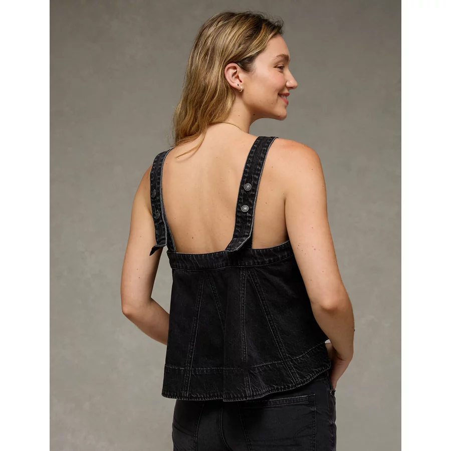 AE Square Neck Pieced Denim Tank Top - Medium Wash