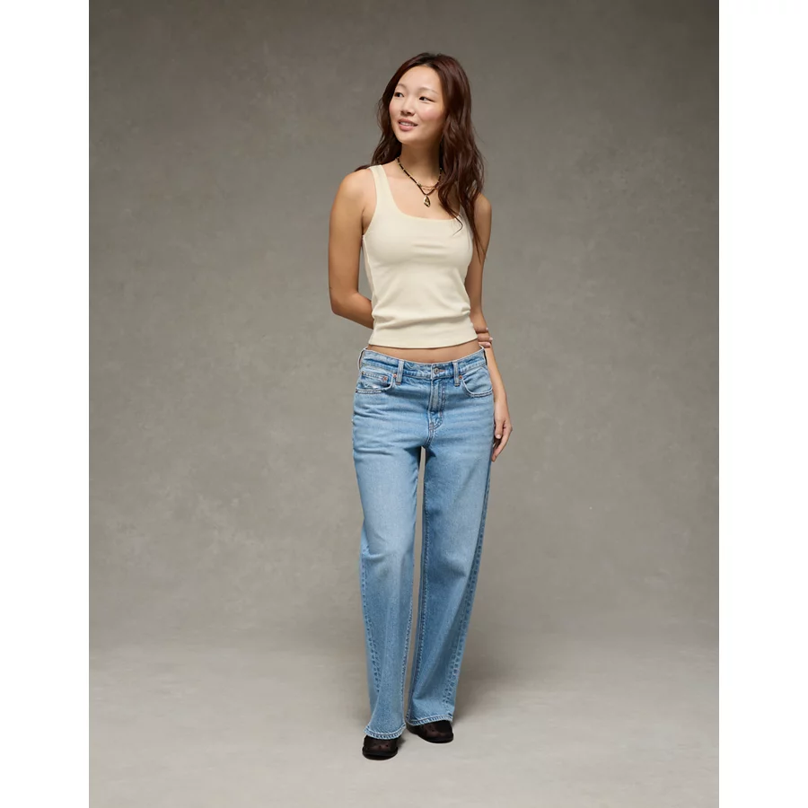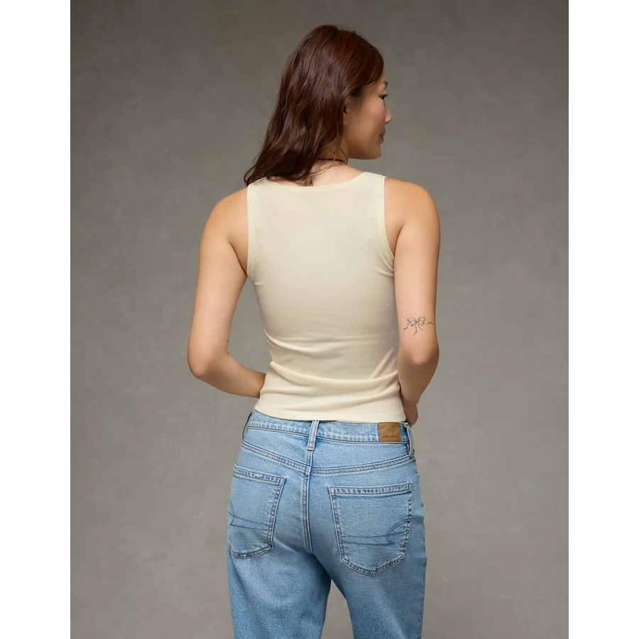 AE Square Neck Pieced Denim Tank Top - Medium Wash