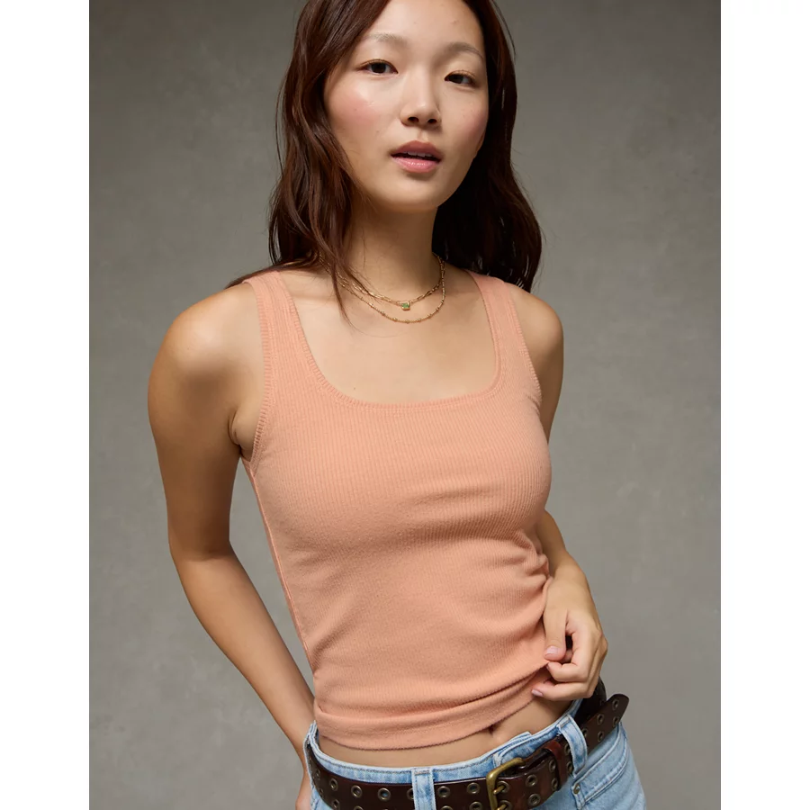 AE Square Neck Plush Tank Top – Peach