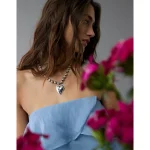 Chiffon fabricV-neckAsymmetrical ruffle details throughoutLeg slit 100% CottonMachine washImported Slip dress silhouetteMaxi lengthSleeveless