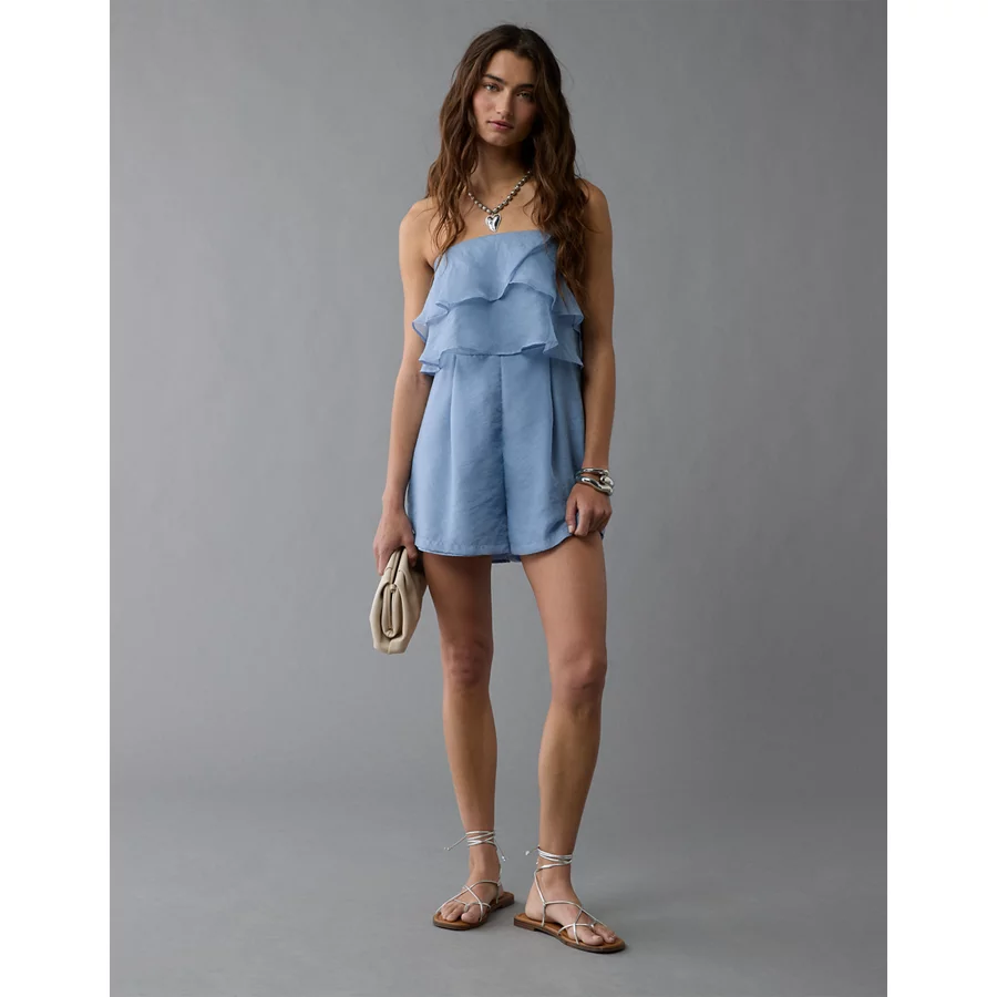 AE 11″ Dreamy Drape Stretch High-Waisted Jort – Light Tinted Wash