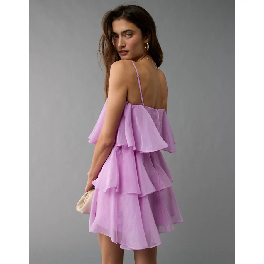AE Strapless Ruffle Tiered Mini Dress – Berry