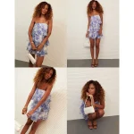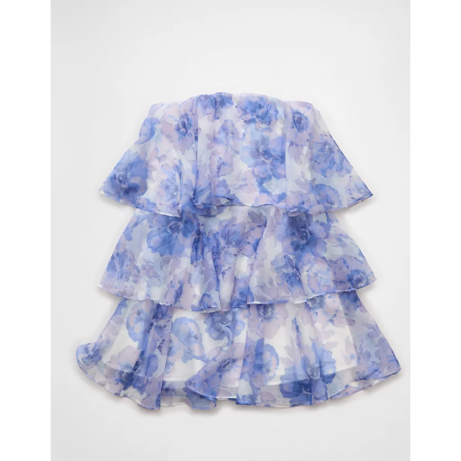 AE Strapless Ruffle Tiered Mini Dress - Blue