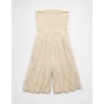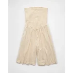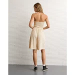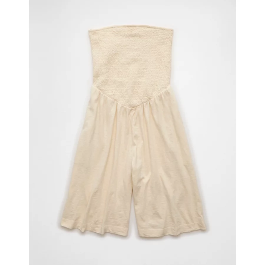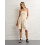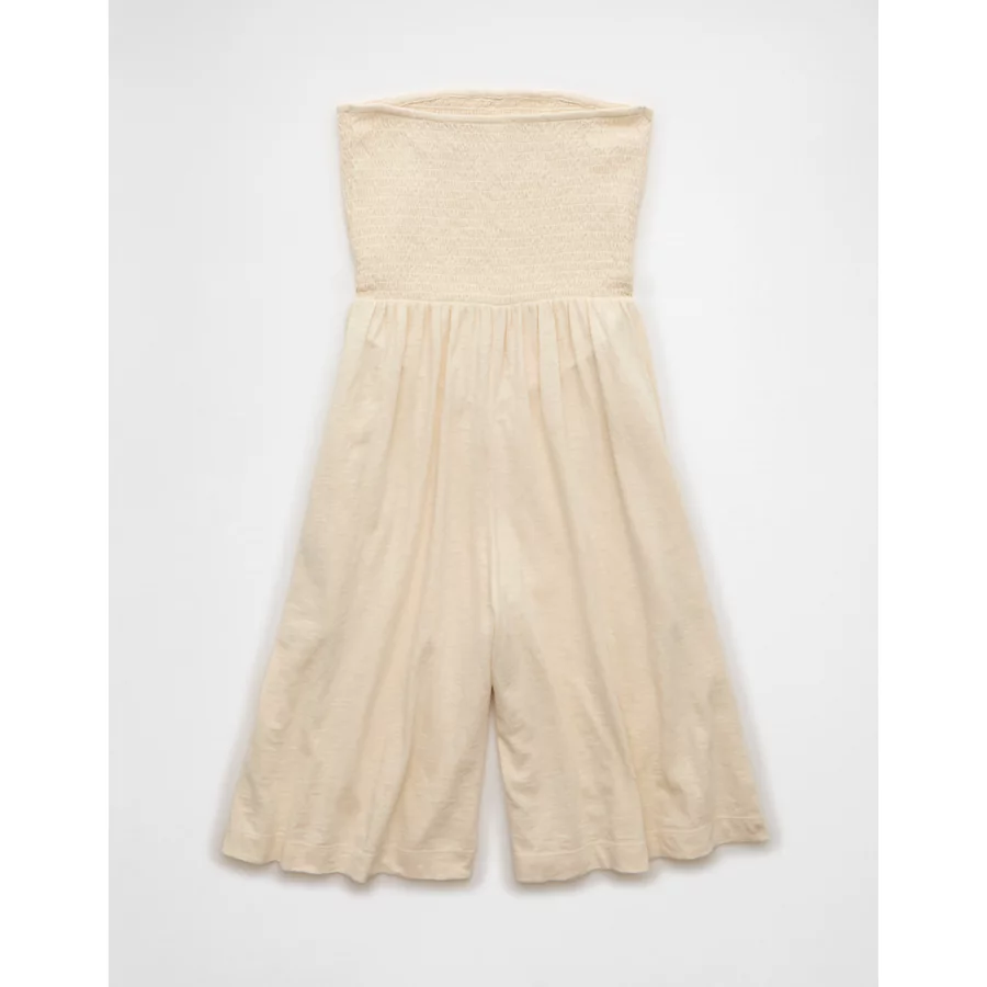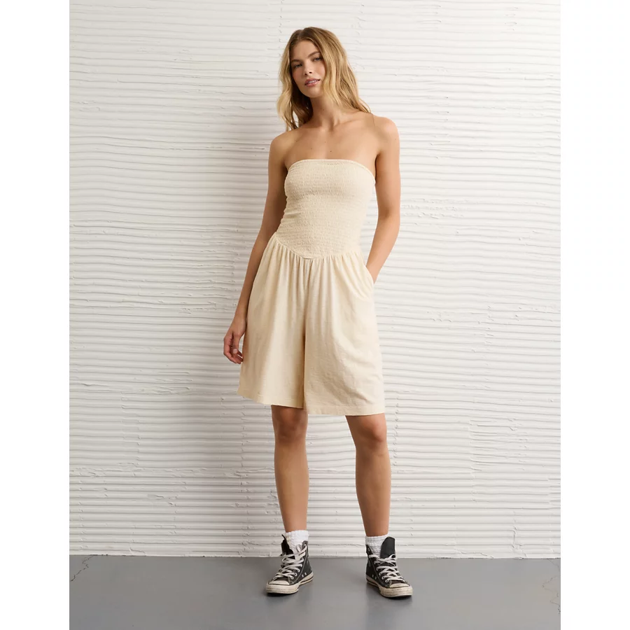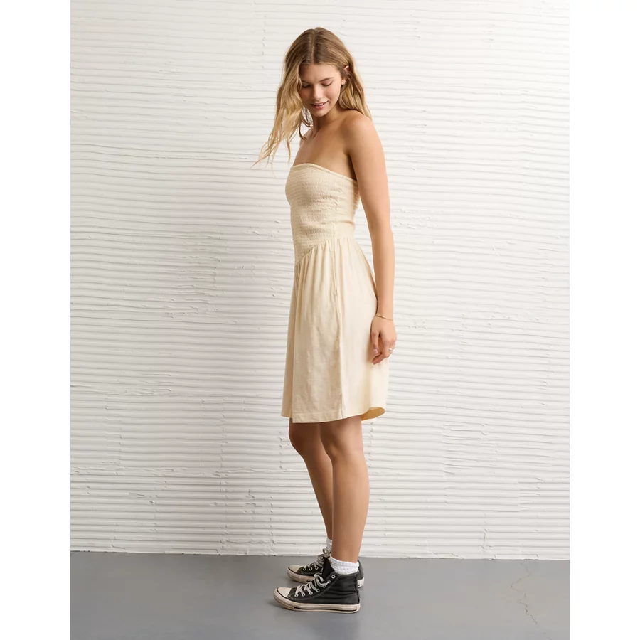 AE Strapless Smocked Ruffle Drop Waist Mini Dress - Cream