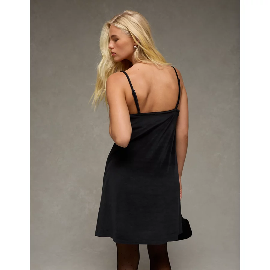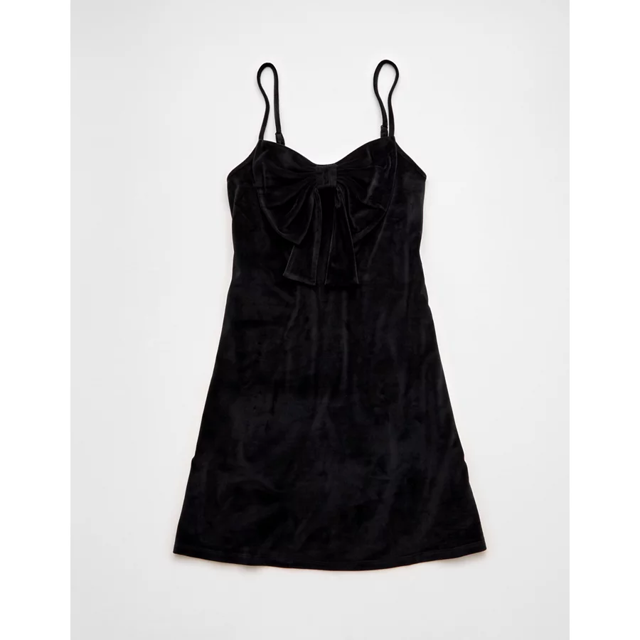 AE Strapless Velvet Knit Bow-Front Mini Dress – Black