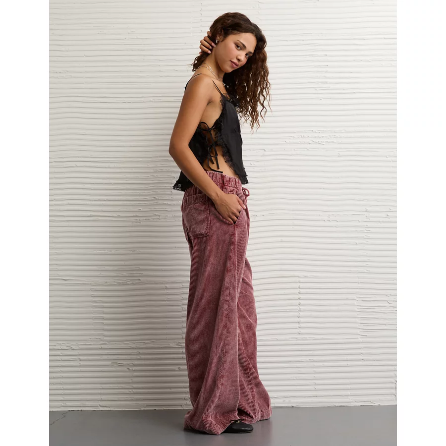 AE Stretch Corduroy Low-Rise Baggy Wide-Leg Pant – Earthen