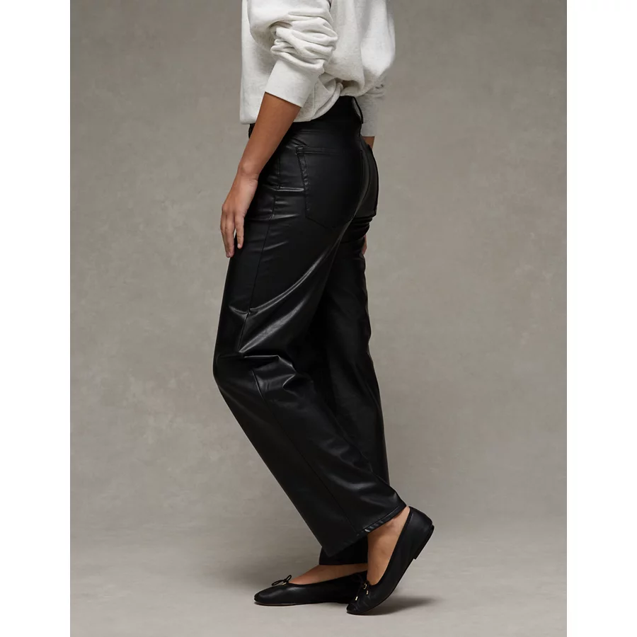 AE Stretch High-Waisted Stovepipe Leather Pant – Onyx Black