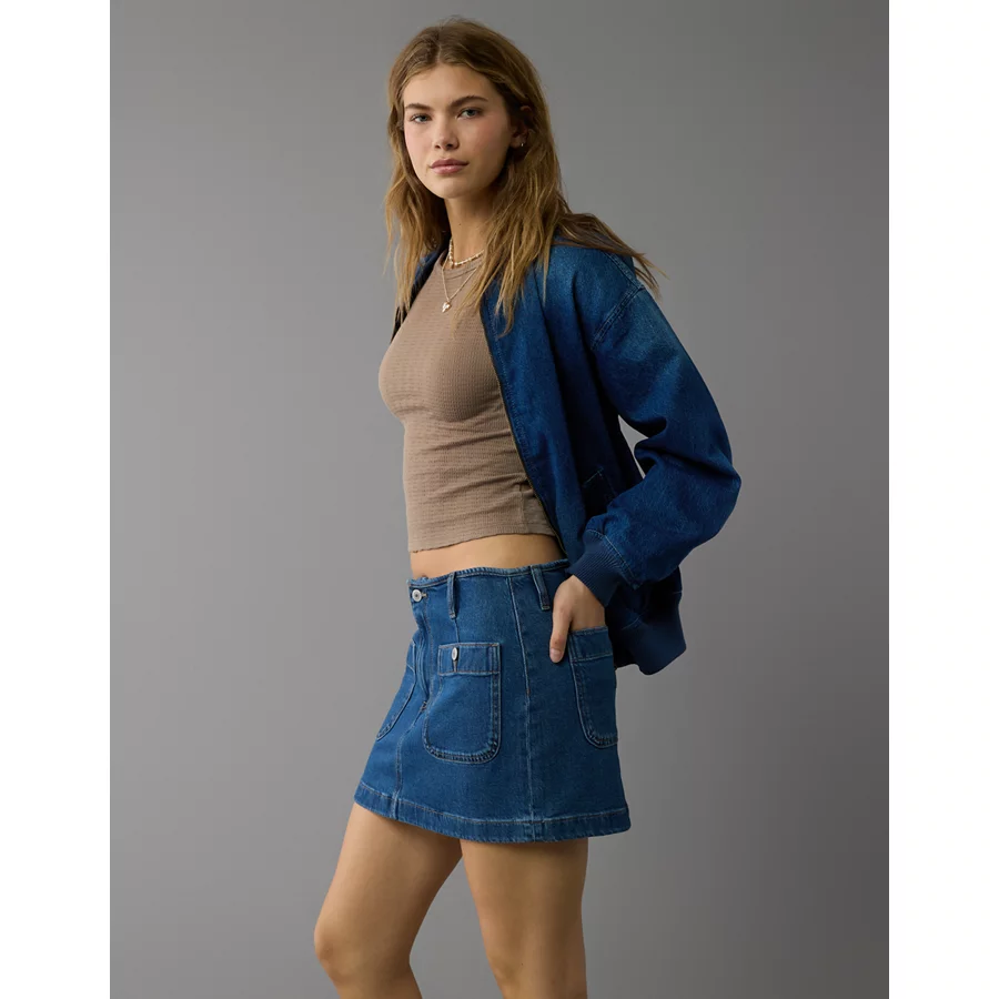AE Stretch Low-Rise A-Line Denim Mini Skirt – Dark Clouds