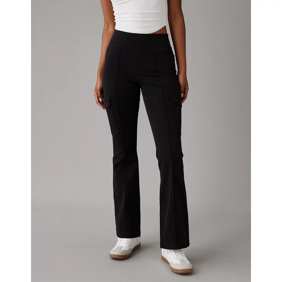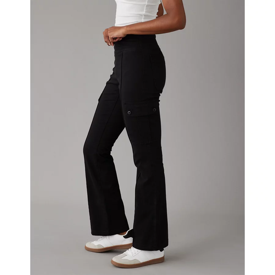 AE Stretch Pull-On High-Waisted Kick Bootcut Cargo Pant – Onyx Black