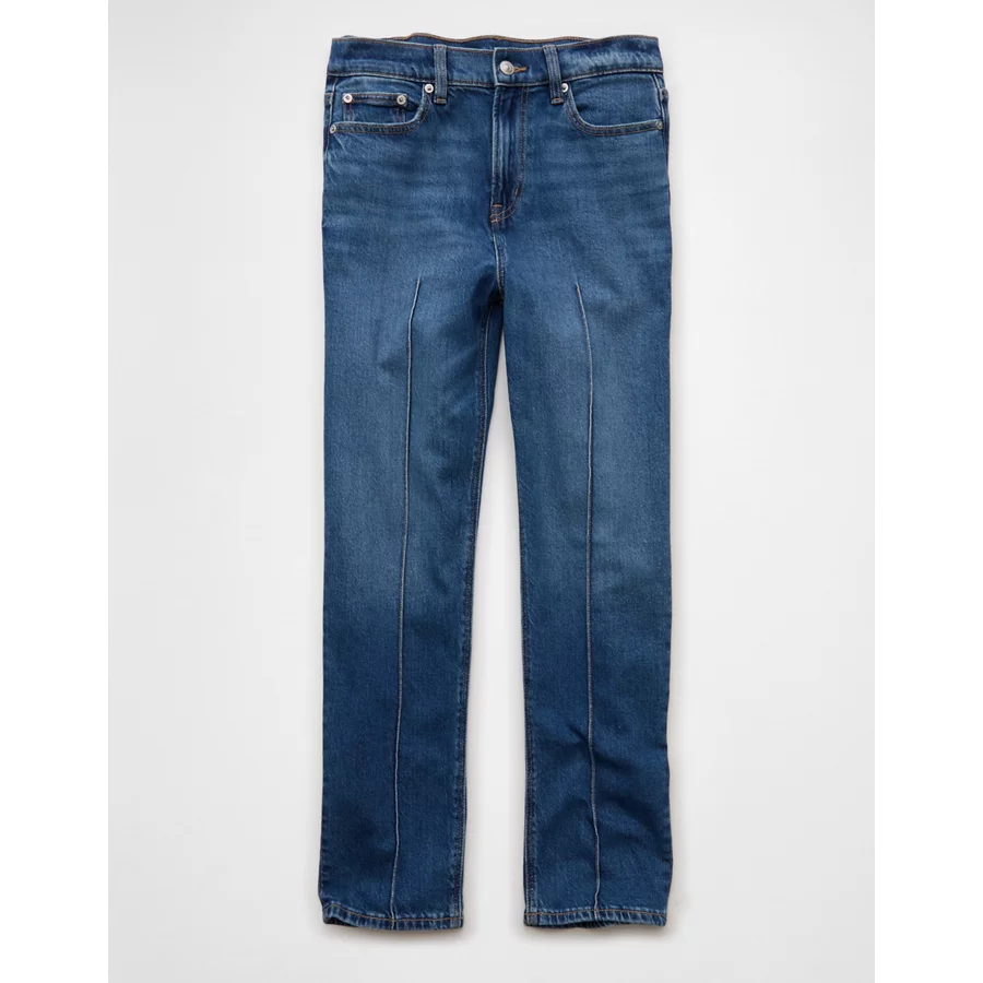 AE Stretch Super High-Waisted Ankle Straight Jean – Brilliant Blue
