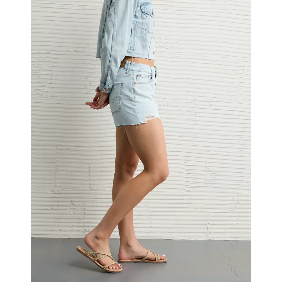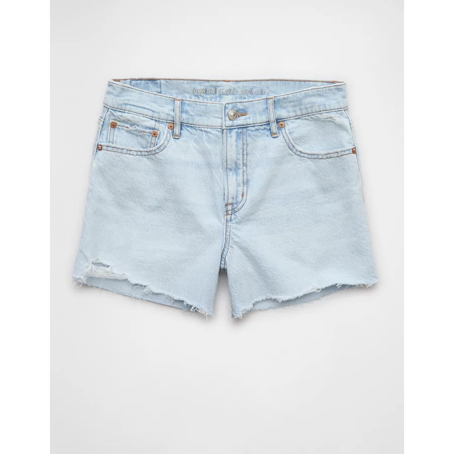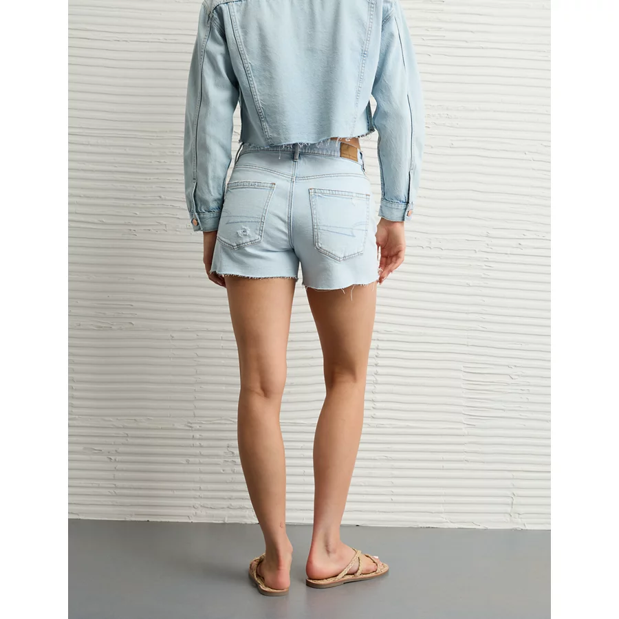 AE Strigid Ripped Super High-Waisted Relaxed Denim Short – Iced Light Indigo