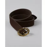 AE Suede Oval Twist-Buckle Belt - Chocolate