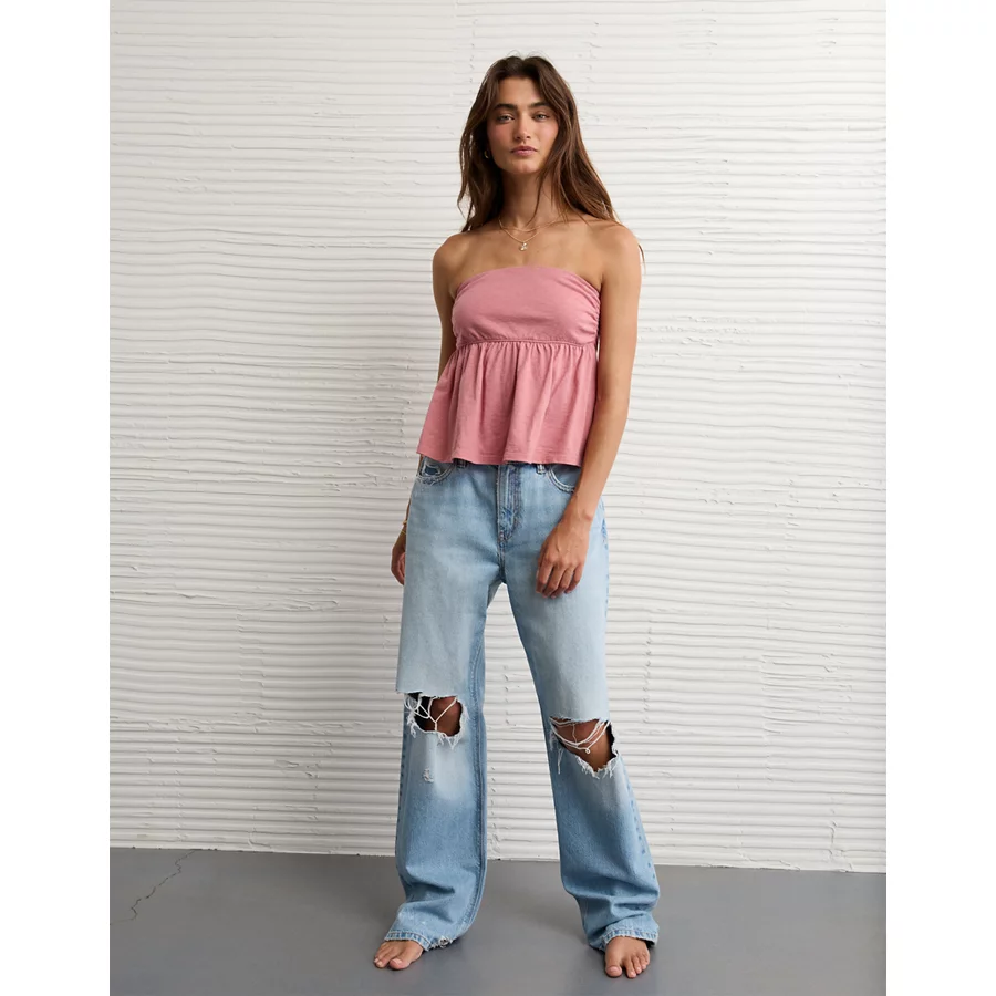 AE Sunchaser Knit Babydoll Tube Top – Blush