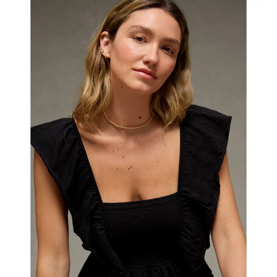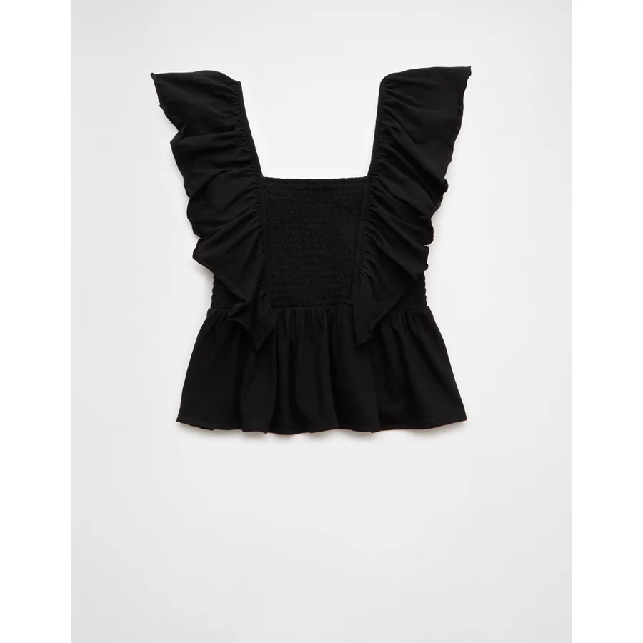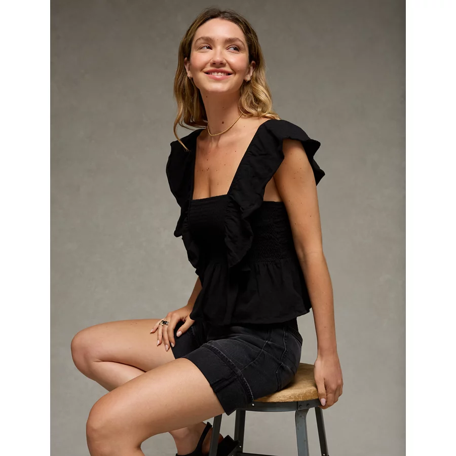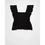 AE Sunchaser Knit Flutter Sleeve Babydoll Shirt – True Black