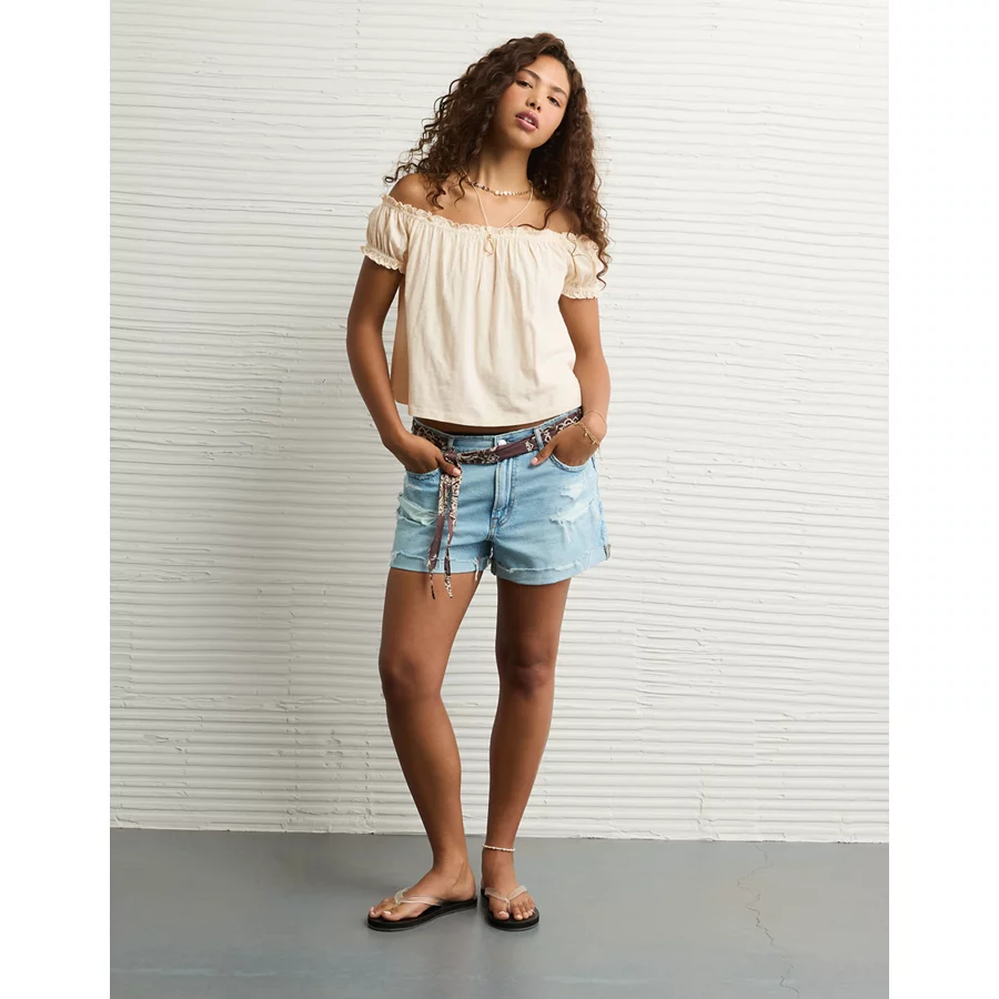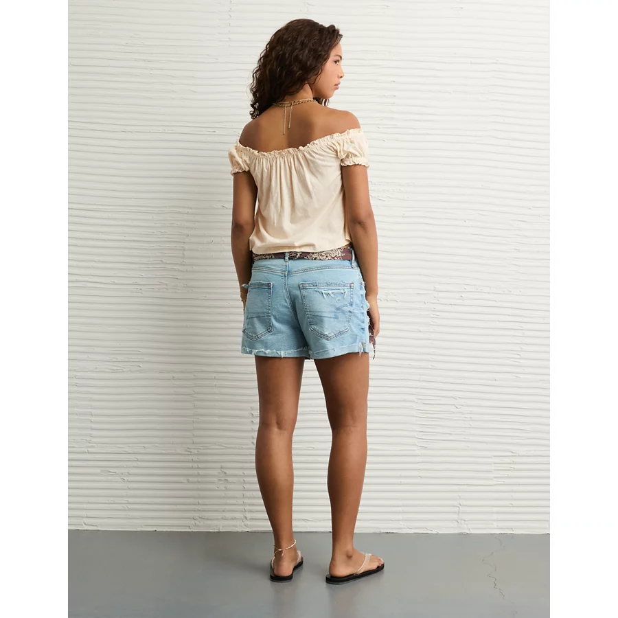 AE 8″ Dreamy Drape Stretch Low-Rise Baggy Jort – White