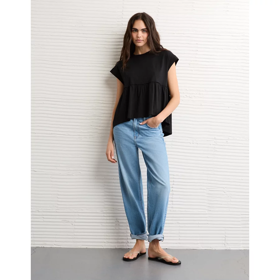 AE Sunchaser Knit Tie Back Babydoll T-Shirt – Black