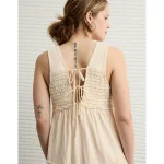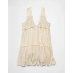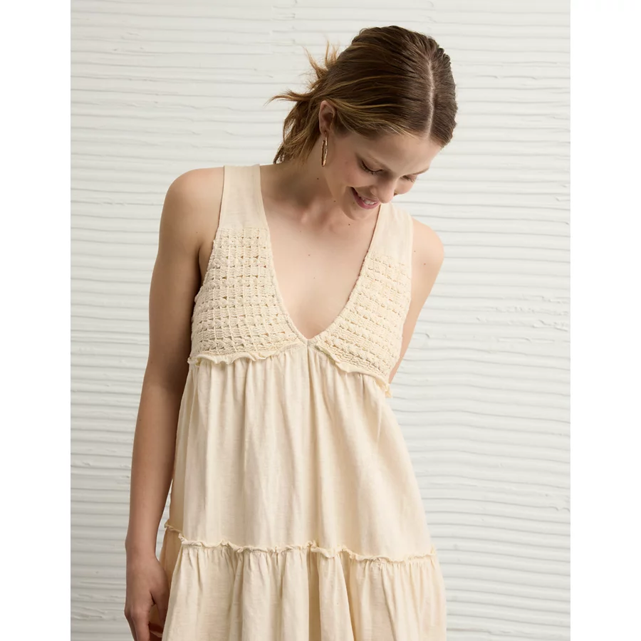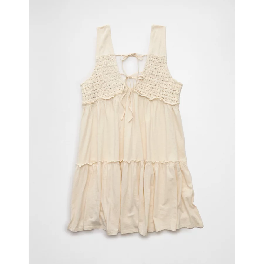AE Sunchaser Knit V-Neck Crochet Mini Dress – Cream