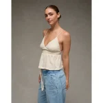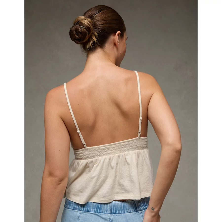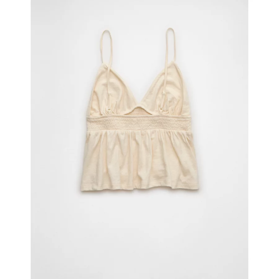 AE Sunchaser Smocked Babydoll Tank Top – Cream