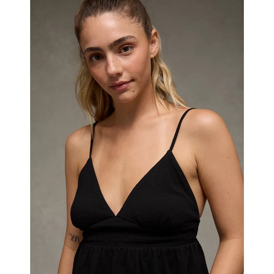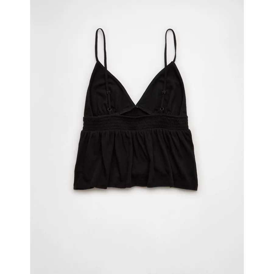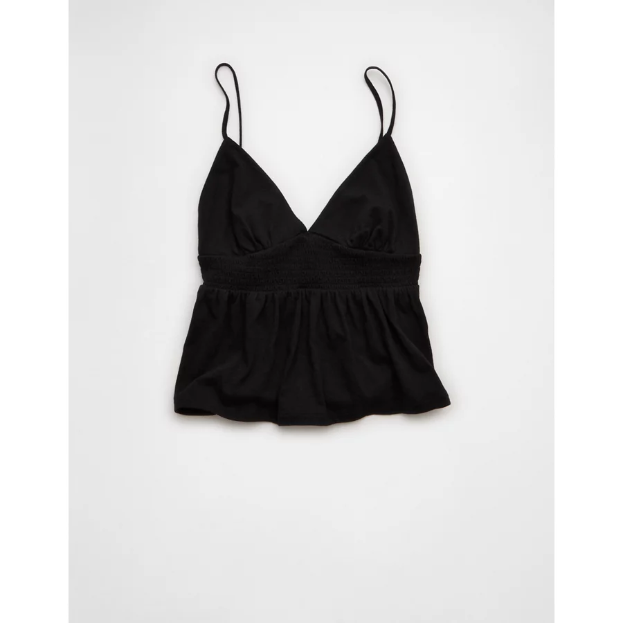 AE Sunchaser Smocked Babydoll Tank Top – True Black
