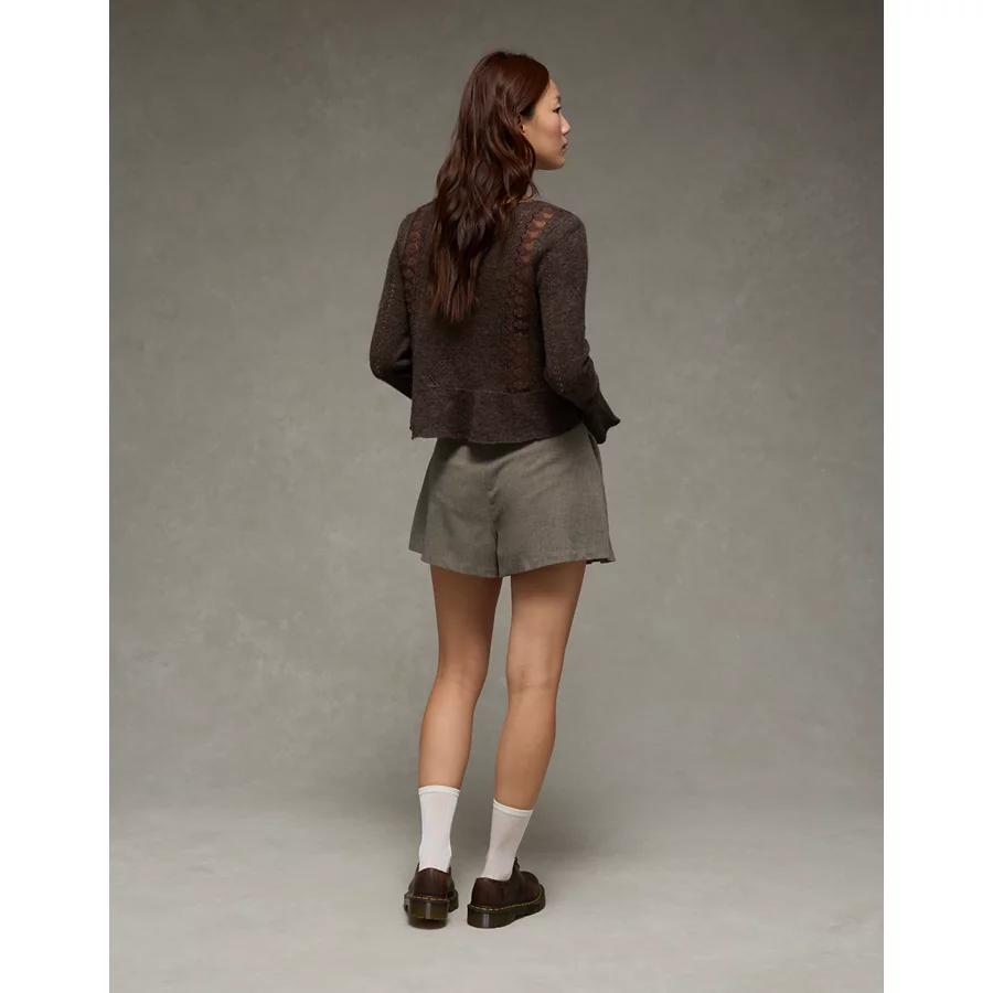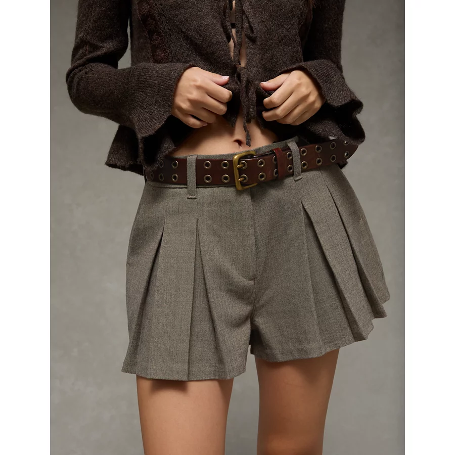 AE Super High-Waisted Pleated Trouser Short – Medium Heather Gray