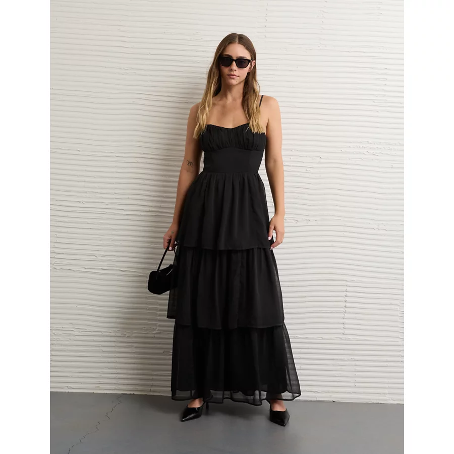 AE Sweetheart Tiered Maxi Dress – Black