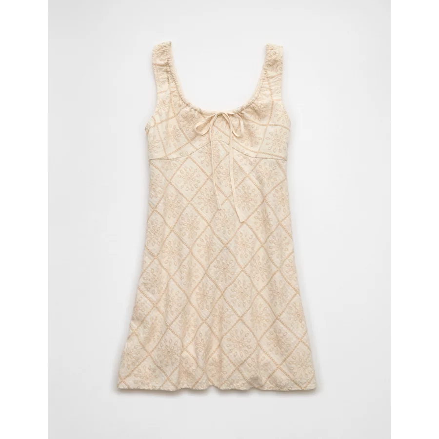 AE Tie Front Eyelet Mini Dress - Chambray Blue