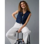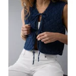 AE Tie Front Ruffle Trim Tank Top - Multi