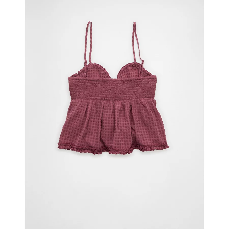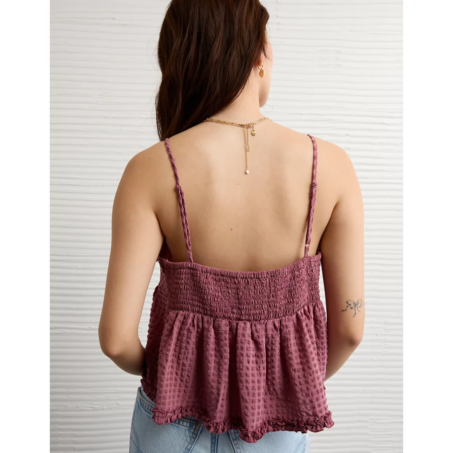 AE Tie Front Ruffle Trim Tank Top – Mauve