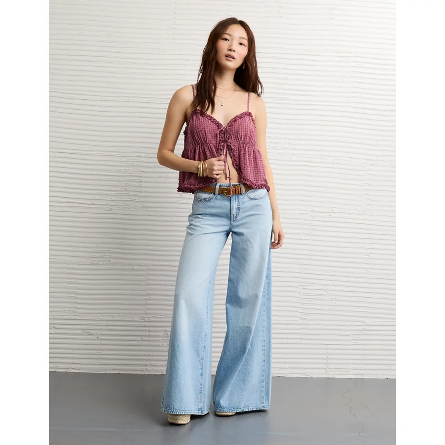 AE Tie Front Ruffle Trim Tank Top - Cream