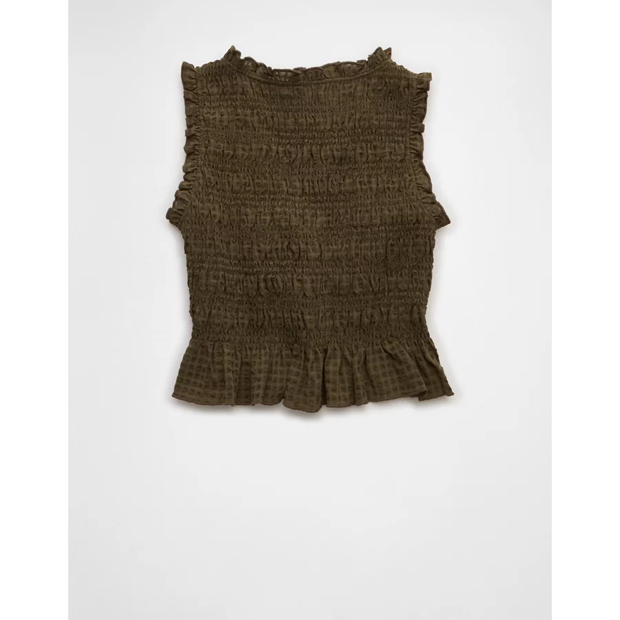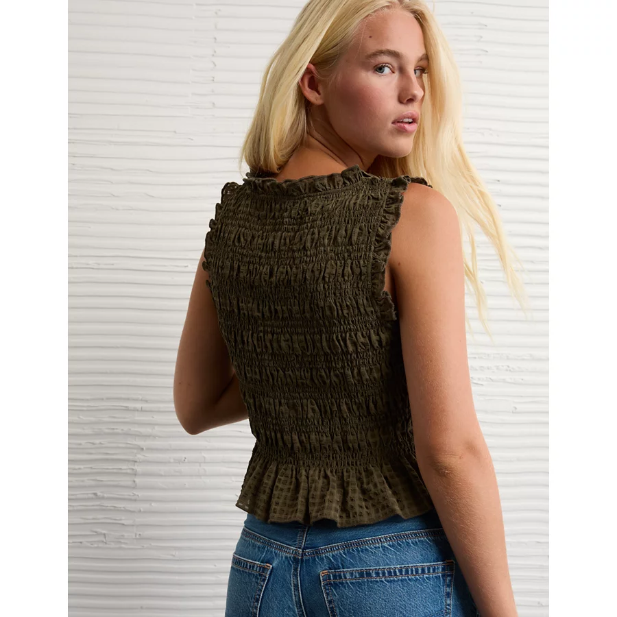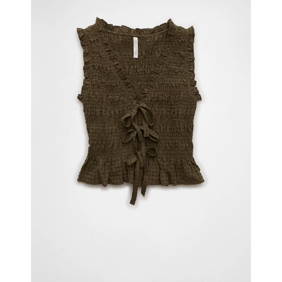 AE Tie-Front Smocked Tank Top – Olive