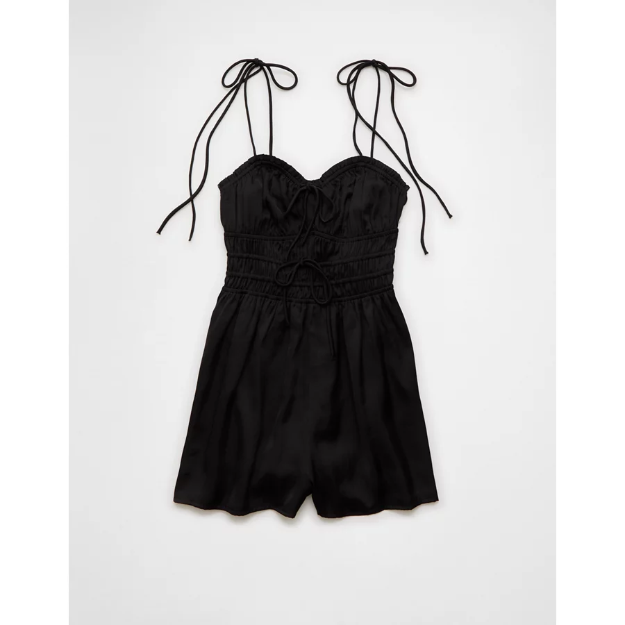 AE Tie Ruched Romper – Black