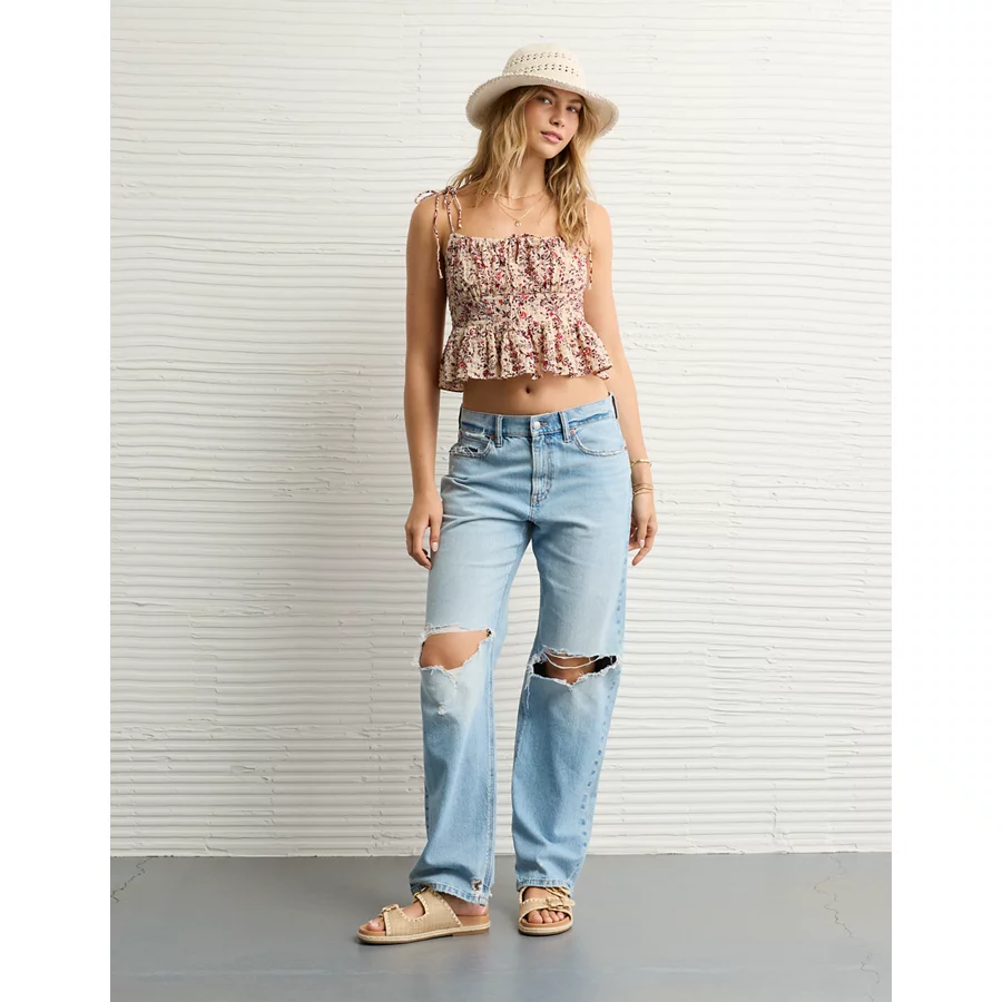 AE 8″ Dreamy Drape Stretch Low-Rise Baggy Jort – Medium Bright Indigo