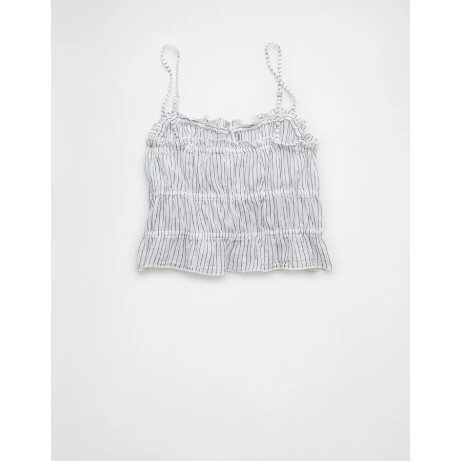 AE Tiered Ruched Tank Top - White