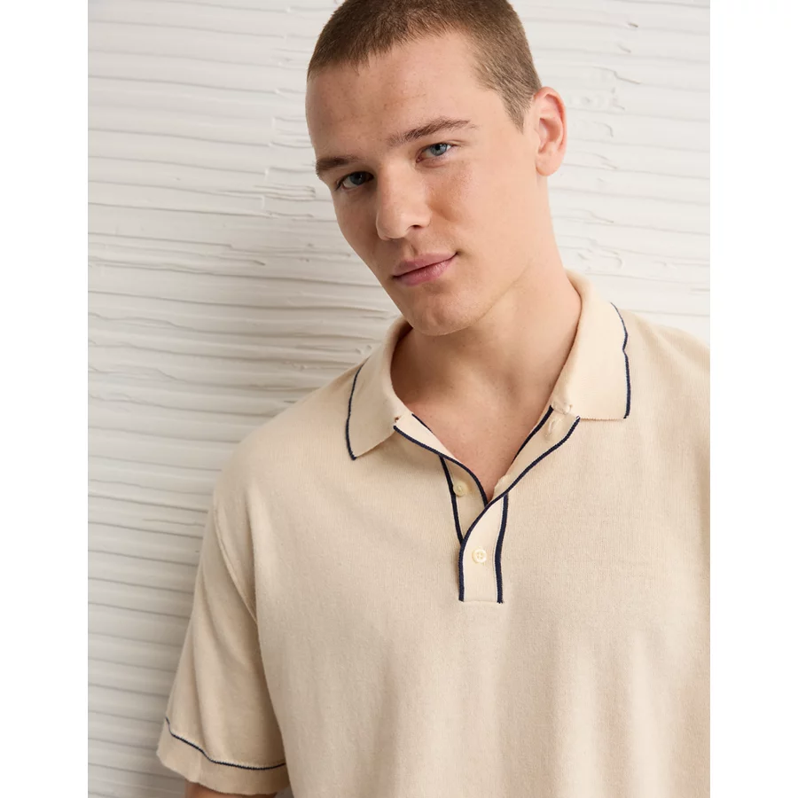 Super soft jersey with added stretchPolo collar with button placketEagle logoStripesThis is Real Good: Made with the planet in mind