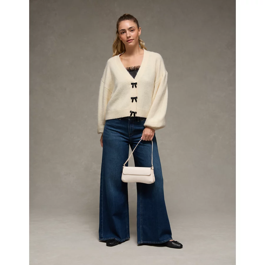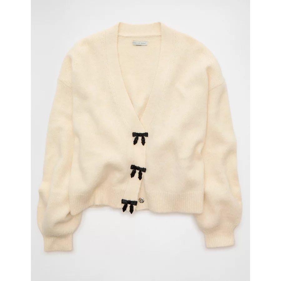 AE V-Neck Bow Cardigan – Cream