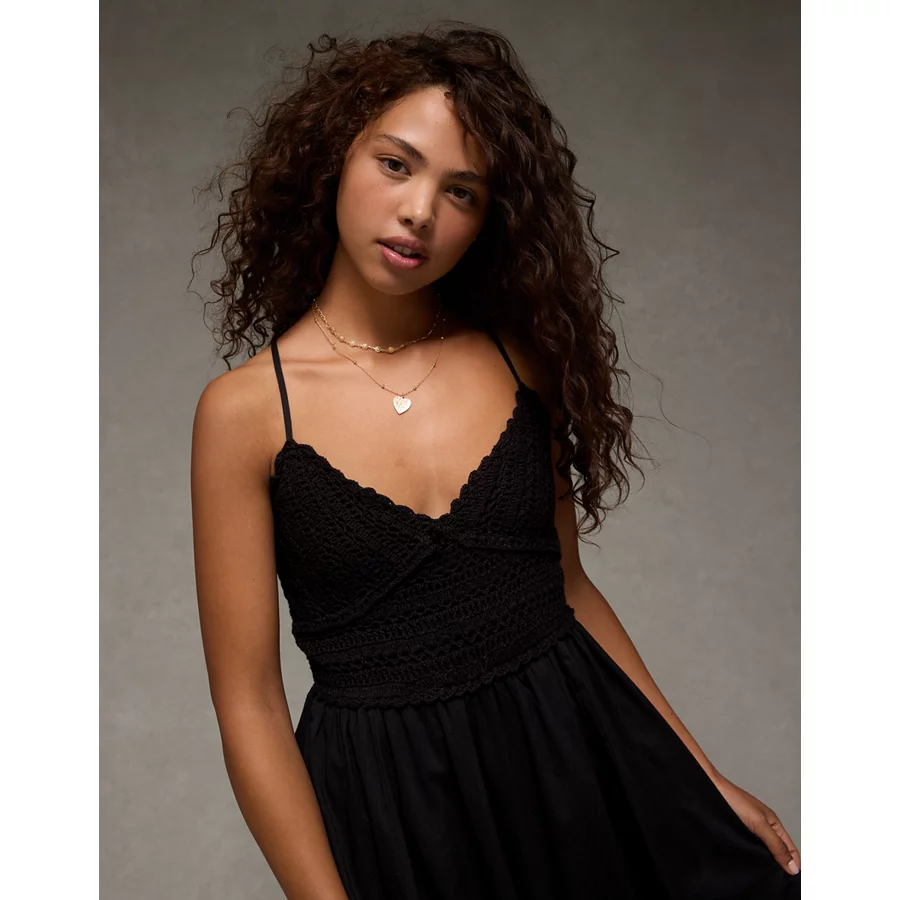 AE V-Neck Crochet Midi Dress – Black