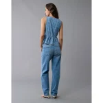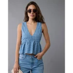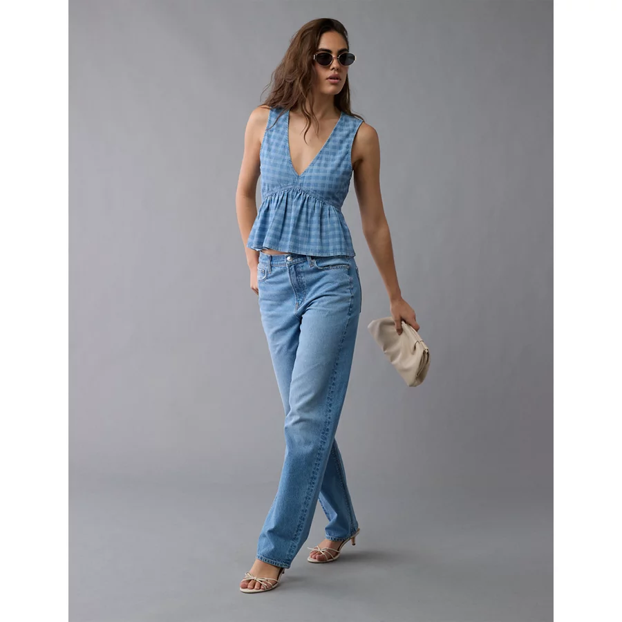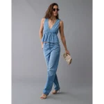 AE V-Neck Denim Babydoll Tank Top – Medium Wash