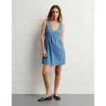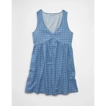 AE V-Neck Denim Babydoll Tank Top - Medium Wash