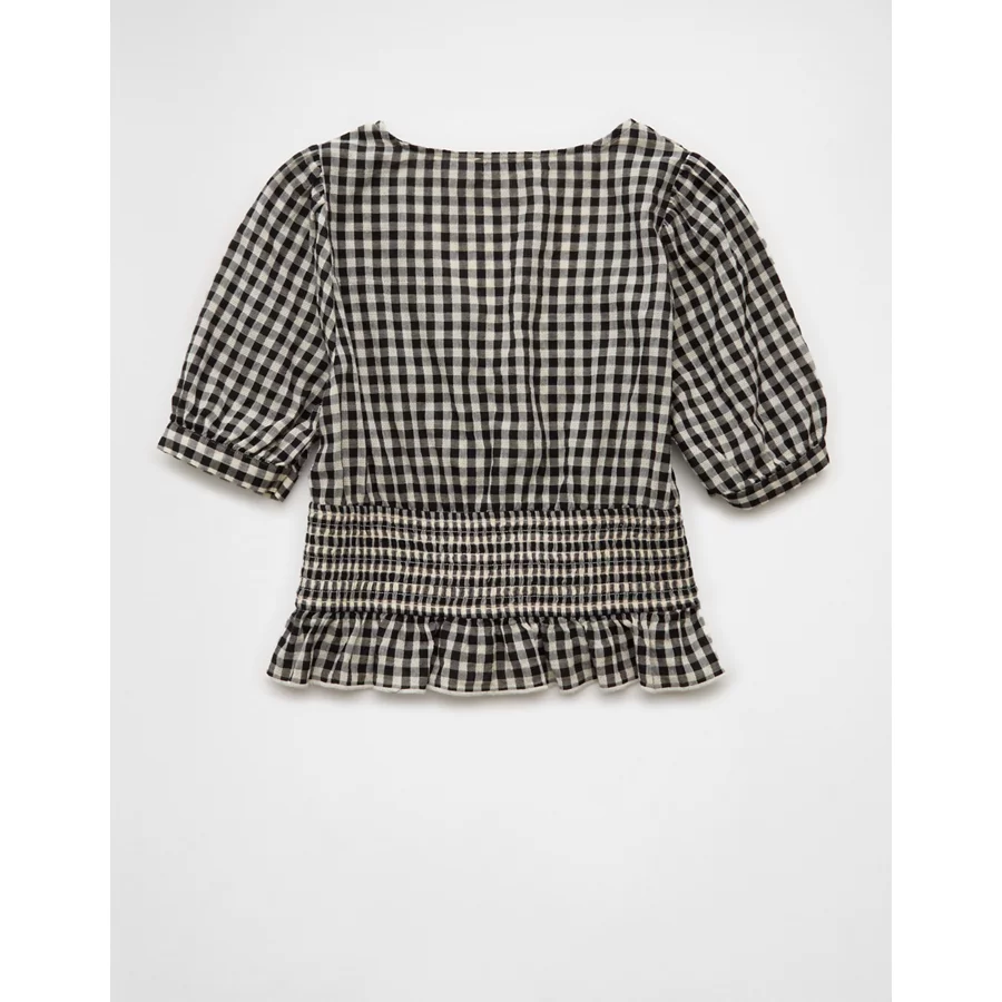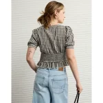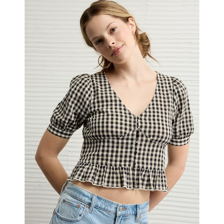 AE V-Neck Puff Sleeve Corset Shirt – Black