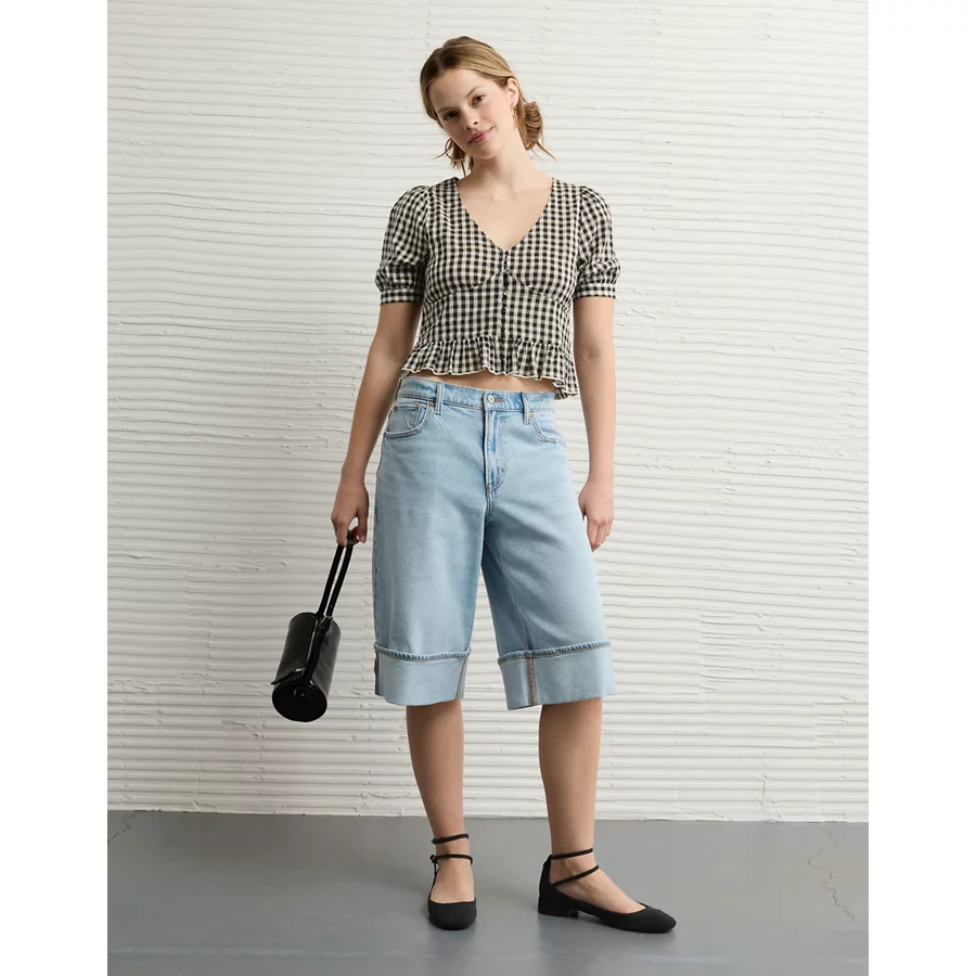 AE 11″ Dreamy Drape Stretch High-Waisted Jort – Light Tinted Wash