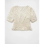 AE V-Neck Puff Sleeve Corset Shirt – Cream